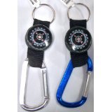 Bright Carabiner Key Chain with a Compass on a Strap. Assorted Colors - Green, Silver, Red, Black, Gold, Blue. CARABINER IS NOT INTENDED TO BEAR WEIGHT.