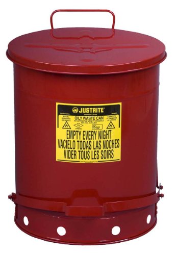 Justrite 9500 Galvanized Steel Oily Waste Safety Can with Foot Lever, 14 Gallons Capacity, Red Reviews